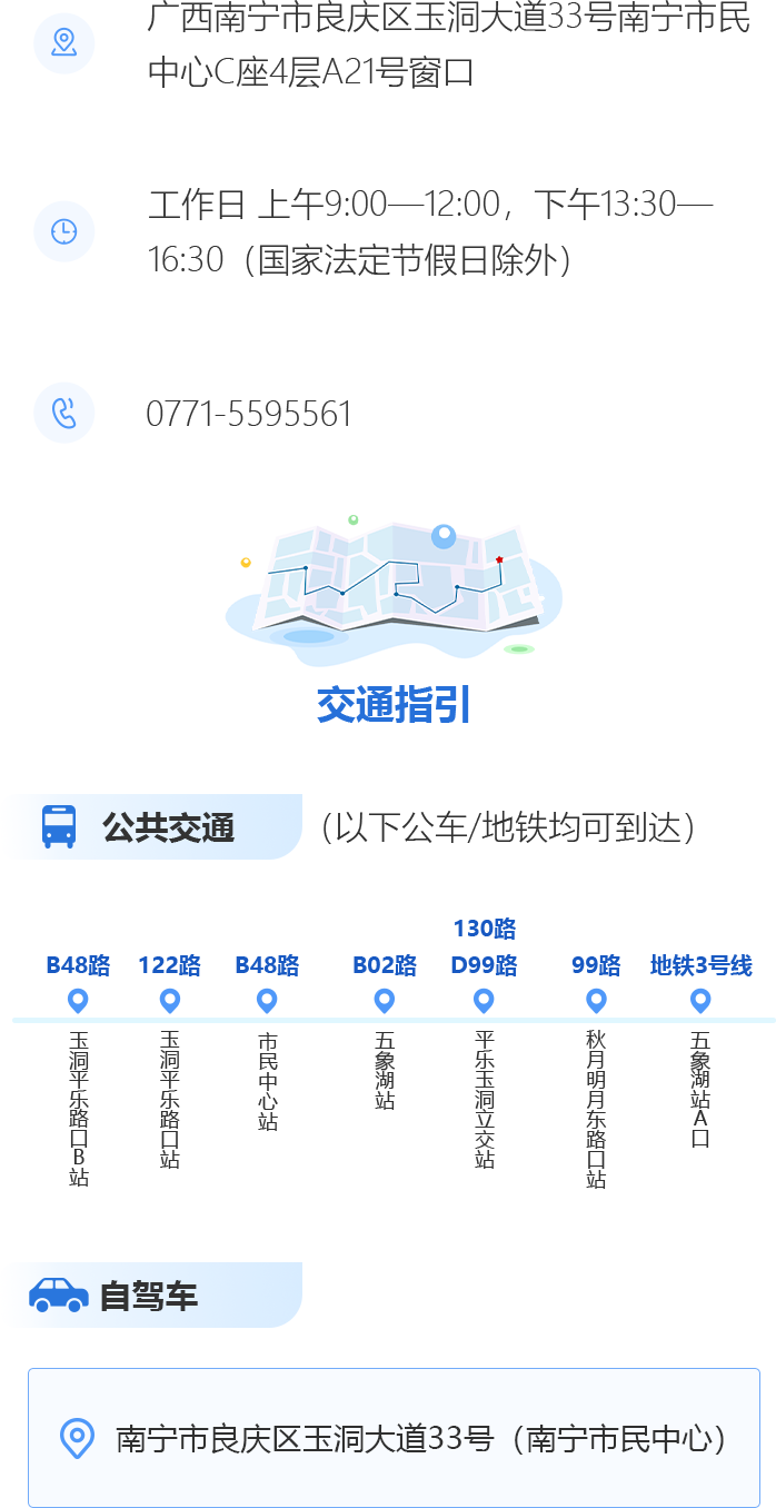 2. 办理地址:广西南宁市良庆区玉洞大道33号南宁市民中心C座4层A21号窗口