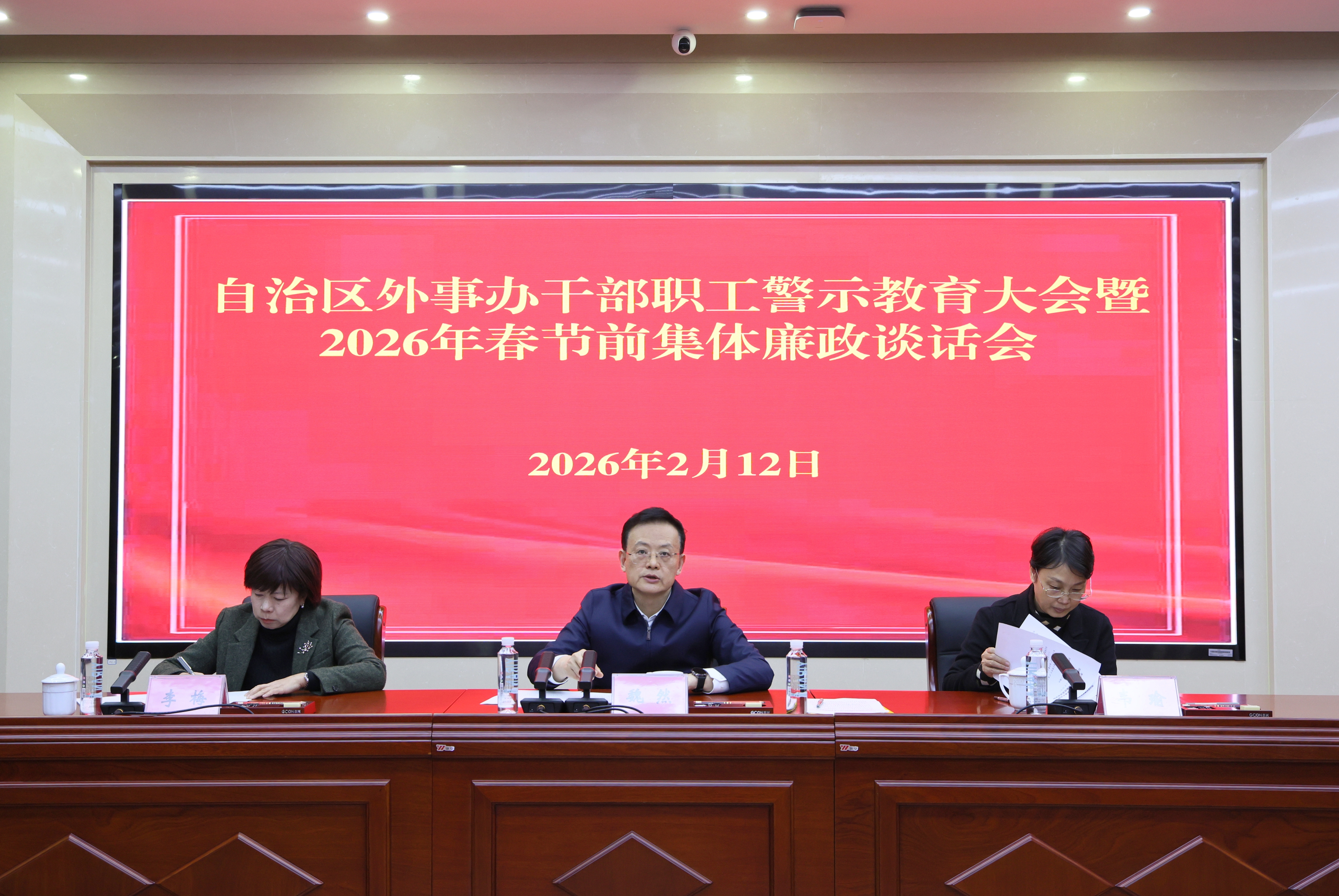 自治区外事办召开全办干部职工警示教育大会暨2026年春节前集体廉政谈话会