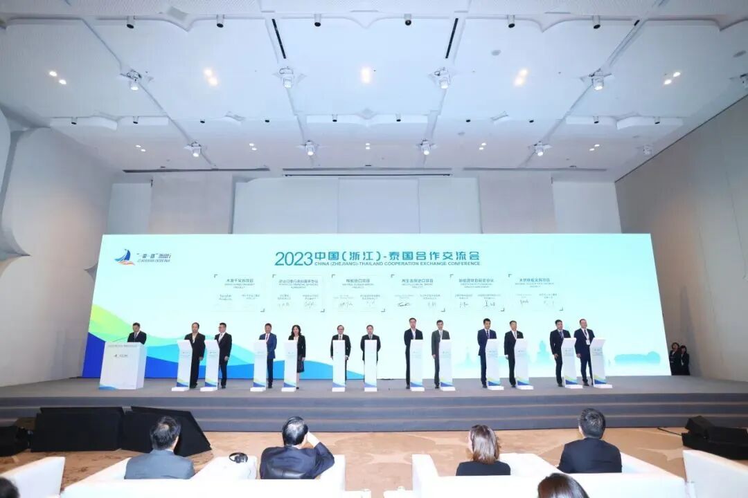 2023年11月,浙江省政府代表团访泰并举办2023中国(浙江)—泰国合作交流会,推动务实合作,促进互利共赢。会上,双方26个合作项目签约,签约金额10.9亿美元,涉及高端装备制造、新材料、建设施工、商品采购、跨境电商、文旅直播、教育科技合作、金融信保服务等领域。
