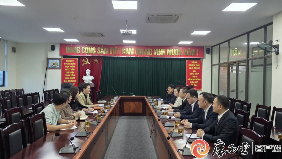 防城港市代表团专程拜访越南食品安全局,双方就食品安全标准协同、监管机制对接及未来合作深化等议题开展务实交流。越南食品安全局负责人表示,越南当前正处于深化改革阶段,高度重视与中国在相关领域的合作,愿与中方进一步保持密切沟通,共同推动签订合作协议,建立常态化合作机制。