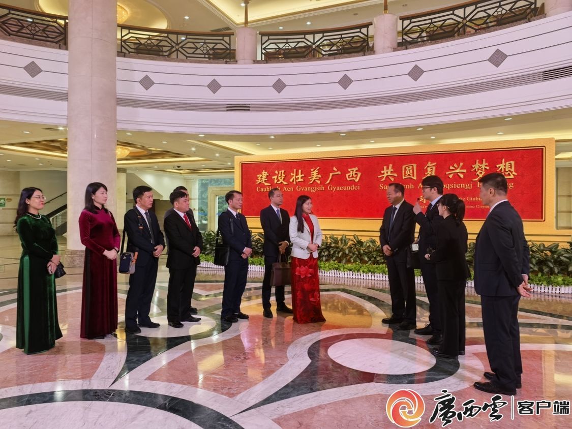 12月12日,越南宣光省人民议会代表团一行到访广西,首站参观广西人民会堂,了解中国人民代表大会制度并与广西人大进行座谈交流。接下来代表团一行还将到南宁、桂林、百色等地考察交流,深入了解广西各地的发展。