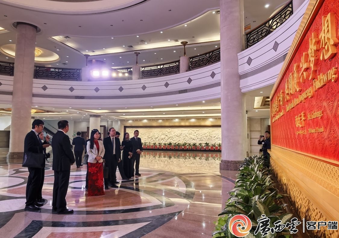 越南宣光省人民议会代表团参观广西人民会堂。广西云-广西日报记者 佘鸿雁 摄