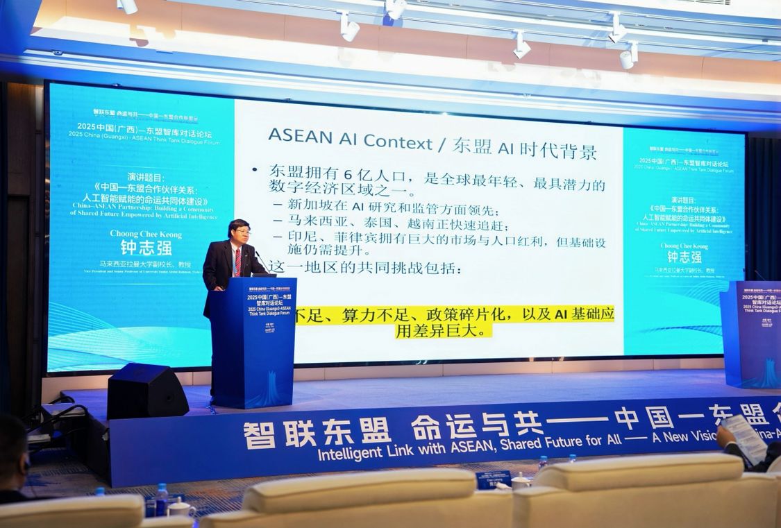 本次论坛以“智联东盟 命运与共——中国—东盟合作新图景”为主题,紧扣国际局势加速演变、区域合作格局深刻调整的新形势,围绕国际局势演变、中国—东盟自贸区3.0与产业联动、数智赋能与AI合作、规则共建与全球南方合作等重大议题深入研讨,旨在通过高水平的智库对话与学术交流,系统汇聚中国与东盟国家政、产、学、研各界的智慧与经验,形成一批人工智能应用合作主张和区域合作智力成果。