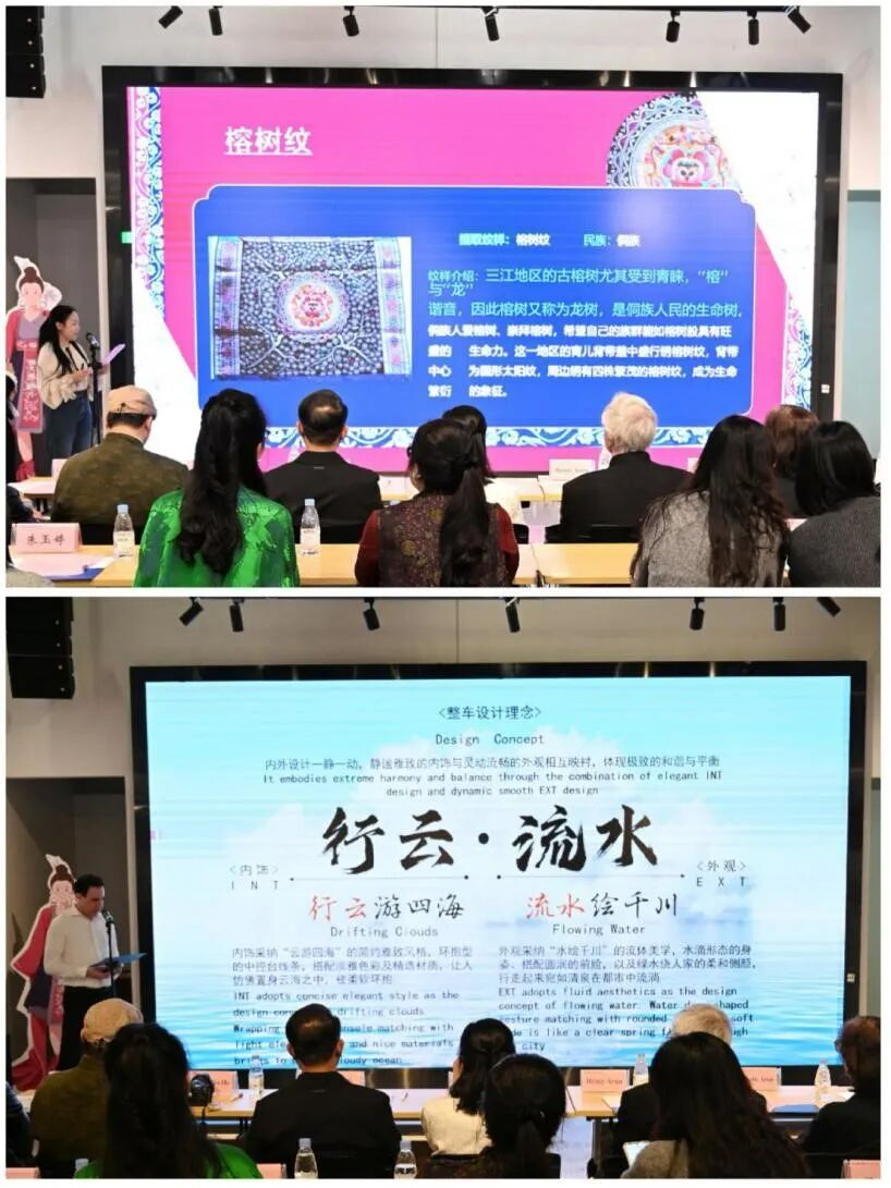 随后的交流环节包含两场主题分享。柳州市第二职业技术学校艺术设计系首先介绍了“三江侗族服饰标准实践与国际推广”的成功案例,展示了通过标准化记录与创新设计,将珍贵的少数民族文化遗产转化为可持续传承的当代资源的经验。东风柳汽造型设计总监克里斯托弗·迈克尔以东风风行星海S7“行云·流水”的整车设计理念为例,分享了工业设计如何融合功能、结合当地文化与艺术思维。