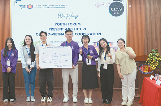 活动以“红色传承、合作探讨、文化互鉴”为核心脉络,构建起全方位、深层次的交流体系。在“红色足迹”研学之旅中,两国青年走进统一宫与战争遗迹博物馆。广西师范大学学生蔡开彬现场开展“望道微课”海外首讲,回溯中越两党两国在革命历程中的互助情谊,让红色基因在青年视角下焕发新活力。“‘同志加兄弟’的情谊是扎根历史的深厚情谊。”广西师范大学学生笪鑫悦的感慨道出了青年心声。越南学生方远婷表示将以新方式传承共同的红色记忆。