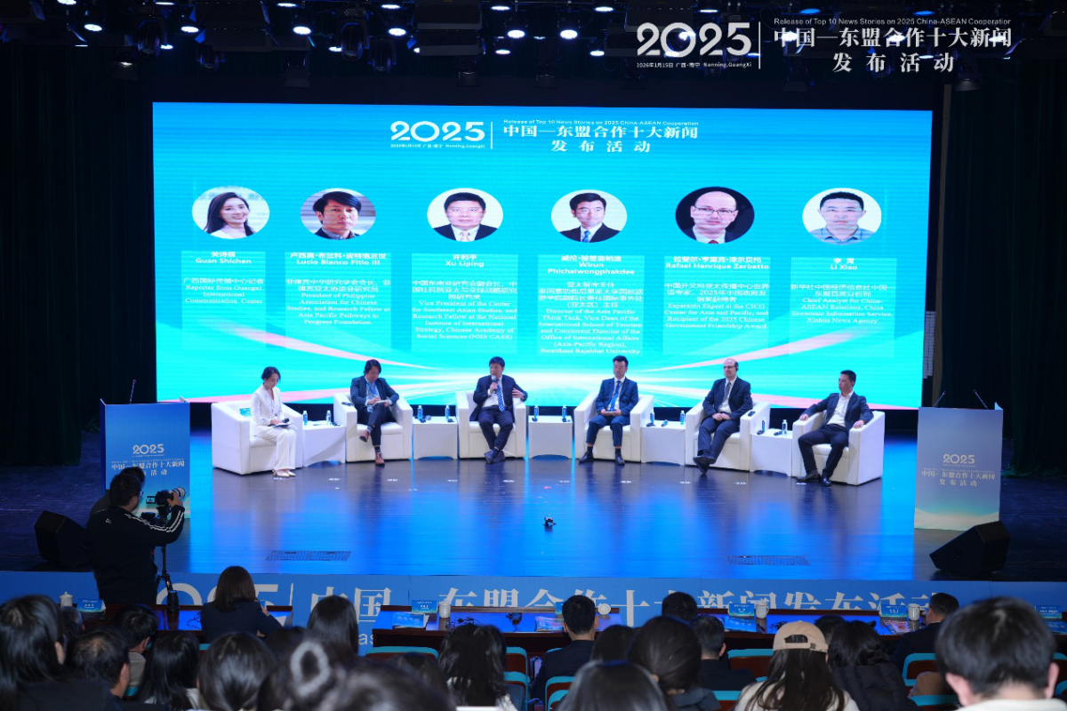 圆桌对话环节,菲律宾中华研究学会会长、菲律宾亚太协进会研究员卢西奥·布兰科·皮特洛三世,中国东南亚研究会副会长、中国社会科学院亚太与全球战略研究院研究员许利平,泰国亚太智库主任、素叻他尼皇家大学国际旅游学院副院长兼任国际事务处(亚太区)主任威伦·披差翁帕迪,中国外文局亚太传播中心世界语专家拉斐尔·亨里克·泽尔贝托,以及新华社中国经济信息社中国—东盟首席分析师李霄围绕2026年中国—东盟合作机遇展开深入研讨,一致认为,中国与东盟将继续以共识凝聚力量,以合作应对挑战,共同书写区域繁荣发展的新篇章。