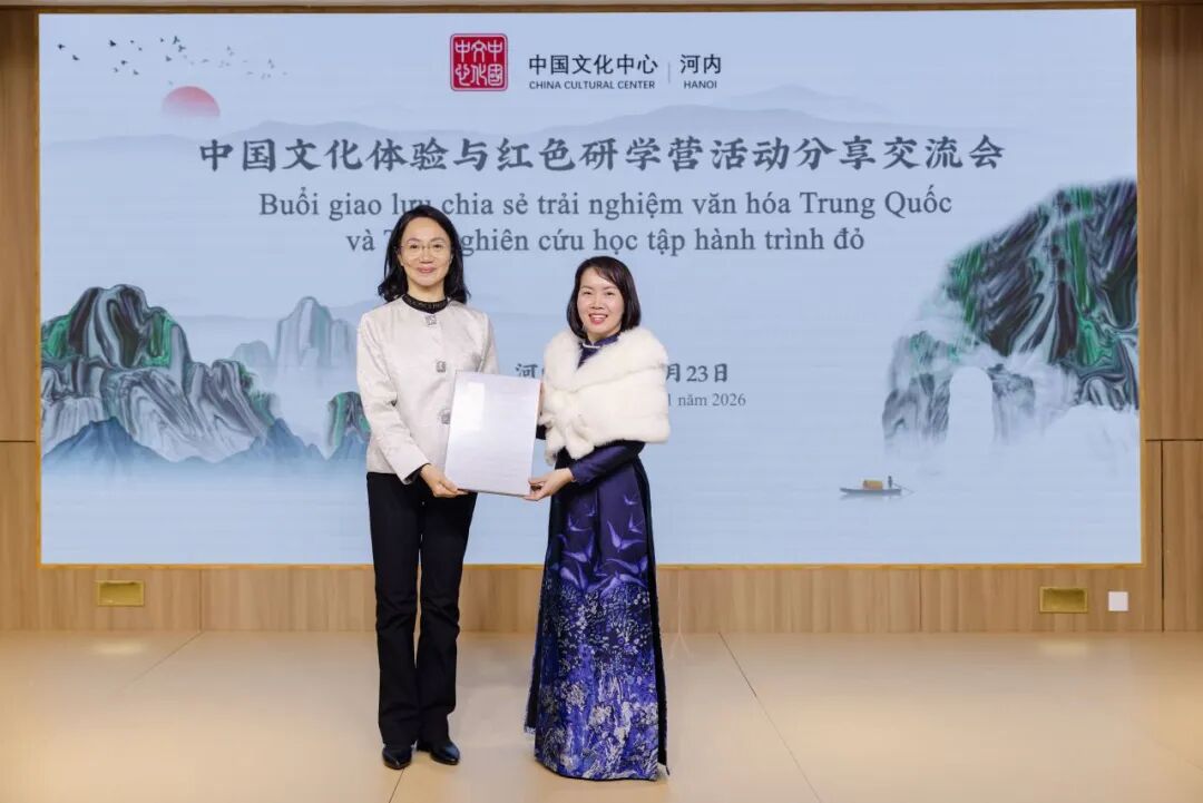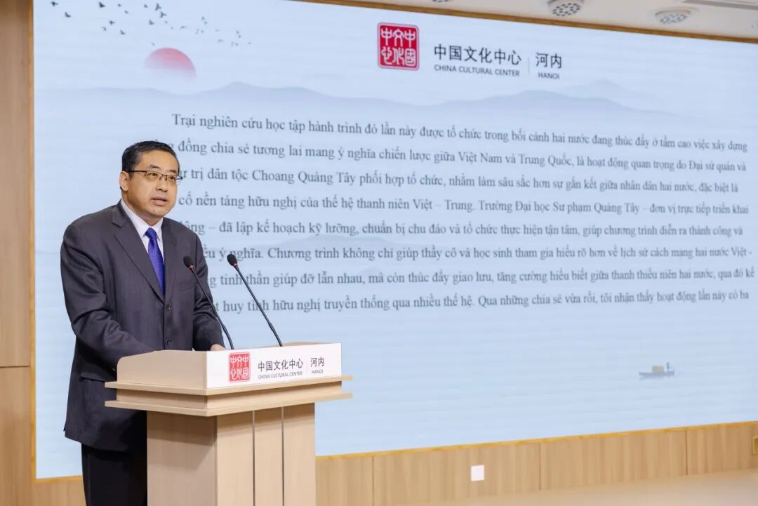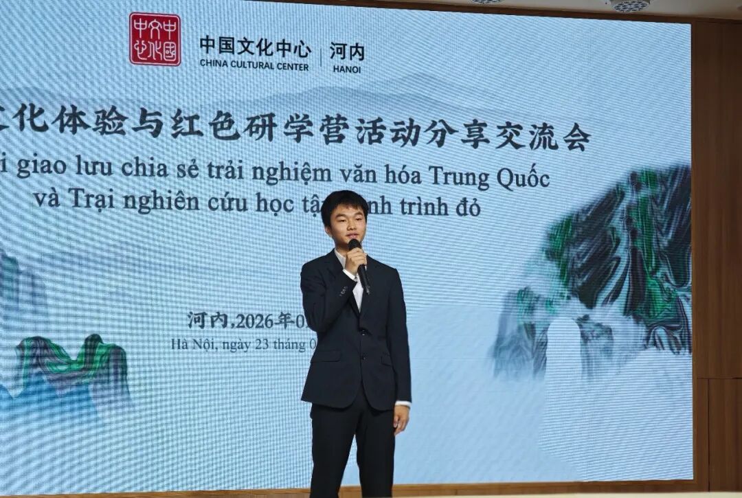 据悉,2026年1月7日至16日,在中国驻越南大使馆指导下,由广西壮族自治区教育厅主办、广西师范大学承办的“重走先辈路,赓续中越情”中越青年师生红色研学营活动在广西圆满举行。来自越南河内、海防等中学和高校的30名师生代表,历时十天,循着胡志明主席等老一辈革命家的足迹,行走于桂林的山水诗画、南宁的育才记忆、柳州的工业脉动、崇左的边关风貌之间。从南溪山医院见证的互助历史,到现代化城乡焕发的蓬勃生机,同学们不仅触摸到历史的温度,更感受到发展的律动,深刻体悟了中华文化的博大与时代发展的壮阔。此次分享会,正是为了延续这份源自广西的感动与思考,搭建青年对话、思想碰撞、情感联结的平台,让研学所获转化为赓续友好的行动自觉,推动中越友谊在新一代手中薪火相传。