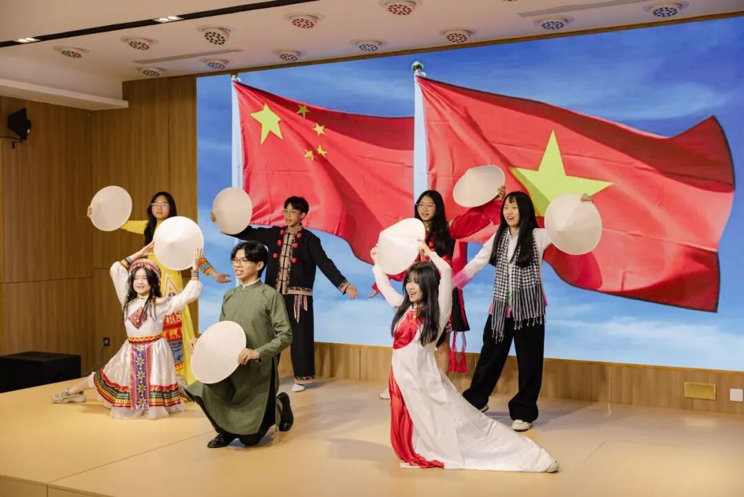 活动在洋溢着青春朝气的文艺表演中拉开帷幕。来自广东外语外贸大学的刘晓芸、王可等两名同学带来的舞蹈《穿林响》,以灵动翩跹的舞姿勾勒出中国古典山水的意境之美,仿佛引领观众穿越翠林幽谷,聆听自然与人文的和谐交响;河内—阿姆斯特丹重点中学学生阮心英以一曲越南筝弹奏《好汉歌》,将中国传统英雄气概与越南民族音乐韵味巧妙融合,琴音激越间尽显两国文化交融的独特魅力;河内国家大学下属外国语大学附中学生吴婉如等演绎的舞蹈《Made in Vietnam》,以现代编排诠释越南本土风情,跃动的步伐中洋溢着青春自信的活力;河内大学中国留学生毛迦勒深情献唱越南经典电影《红雨》主题曲《还有什么比这更美》(Còn gì đẹp hơn),以流畅越语和动人歌喉,唱出了跨越山河的情感共鸣,引得现场掌声如潮。