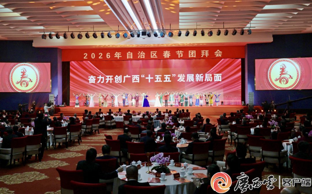 在丙午马年春节即将到来之际,2月13日上午,2026年自治区春节团拜会在南宁举行,各界人士欢聚一堂,共迎新春。自治区党委书记、自治区人大常委会主任陈刚出席团拜会并致辞,代表自治区党委、人大、政府、政协,向全区各族干部群众,向驻桂人民解放军、武警官兵和公安干警,向全区各民主党派、工商联、无党派人士、人民团体和各界人士,向全区离退休老干部、老同志,向所有关心支持广西发展的港澳台同胞、海外侨胞和广大海内外朋友们,致以诚挚的问候和美好的祝愿。自治区主席韦韬主持团拜会,自治区政协主席孙大伟出席。