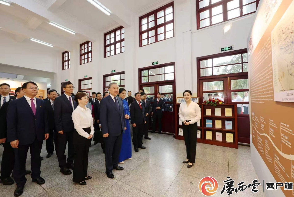 在广西大学,苏林专程参观原广西南宁育才学校(越南中央学舍区)旧址。这片承载着中越两国并肩奋斗记忆的红色地标,再次成为两国高层互动的重要一站,意义深远。
