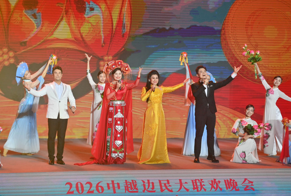 当晚,中越两国文艺工作者联袂献上7个精彩节目。从融合广西歌圩与越南“以歌会友”传统的开场歌曲《广西尼的呀》《越南,我的家乡》,到两国舞者身穿中华古典服饰演绎的《采薇》,再到全体演员合唱已成为两国友好象征的《越南·中国》,整场晚会高潮迭起。尾声,演员们邀请嘉宾与观众手拉手,跳起同心圆舞,将“美美与共”的氛围推向顶点。