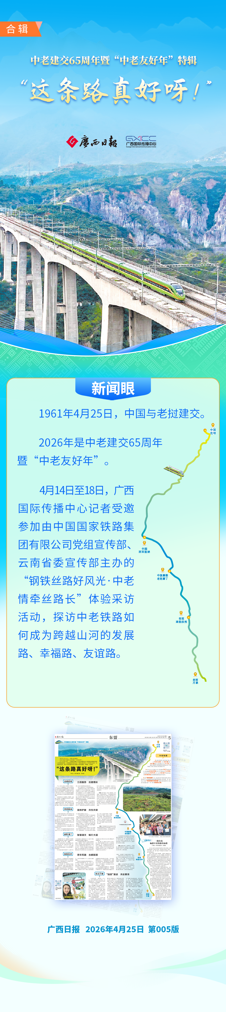 观察:“万水千山不再远,中老友谊永相连。”正如歌曲《坐上动车去老挝》所唱,这条承载着友谊、温暖、奋斗与蜕变的“钢铁丝路”,串联起沿途的山河与烟火,见证着两国的互助与成长,让中老友谊愈发深厚,让共同发展的美好蓝图在轨道延伸中一步步变为现实。