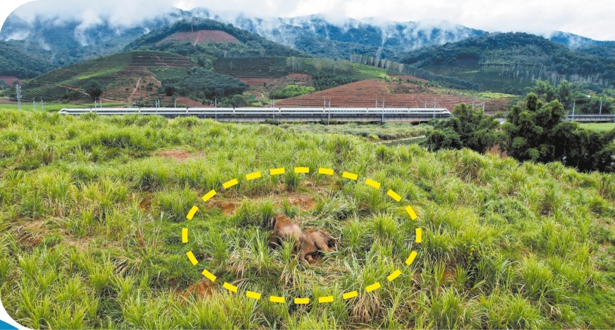 在铁路建设之初,建设方充分考虑到亚洲象的生存需求,采用“以桥代路”方式,修建涵洞,为亚洲象预留专属通道。同时,加装声屏障、升级钢柔双态防护栅栏,既防止野象侵入铁路,也避免野象受伤。“保护大象,其实也就是保护铁路安全。每每看到大象与铁路和谐共处的画面,我都倍感欣慰。”黄云海眼中透出对亚洲象的关爱。
