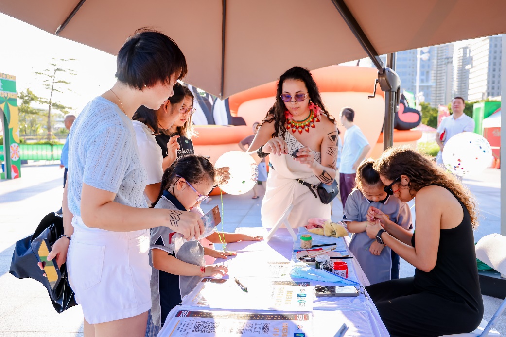 嘉年华现场设置了四个主题区域,涵盖文化展示、艺术表演、美食体验和互动游戏,充分体现琴澳两地文化共融的特色。“葡韵文化”专区展示葡语国家及地区的传统工艺品,澳门土生葡人导师现场主持手绘葡砖杯垫、环保袋等工作坊,让参与者亲手制作独具葡韵的纪念品。现场还设有互动式文化展墙,系统介绍九个葡语系国家和地区的历史文化。