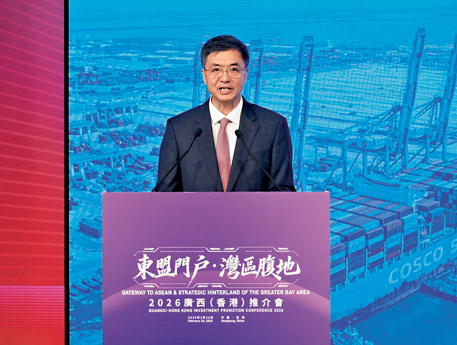 他指出,香港與廣西地緣相近、語言相通、人緣相親,兩地關係一直密切。在投資方面,香港是廣西最大的外資來源地,一直服務廣西企業「走出去」。去年雙方貿易額同比增長21.9%,在廣西新設港資企業159家,佔外資比重超62%,供港農產品總量亦按年增長12%,合作成果豐碩。