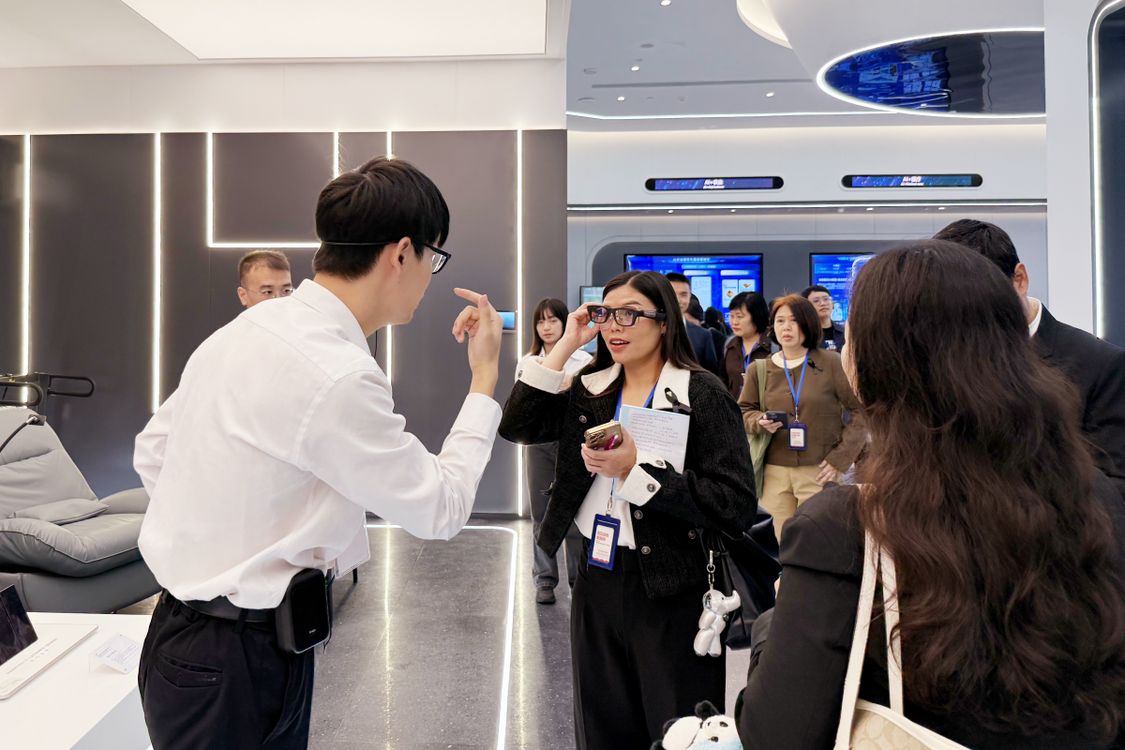 泰国记者现场体验“广西制造”AI眼镜。