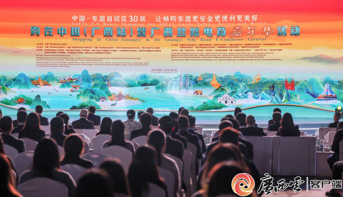 作为商务部开展“购在中国”“电商惠全球”主题活动的重要实践,此次活动旨在抢抓中国—东盟自贸区3.0版升级议定书正式签署的新机遇,进一步深化6.18“东盟水果·汇聚广西”和面向东盟“AI+跨境电商”创新应用大赛活动成果,持续推动“东盟出产+广西集散+中国畅销”模式发展。活动精心设置了“丝路聚首·共话新机遇”“丝路同行·共享发展红利”“聚力丝路·共绘合作新蓝图”“购在中国(广西站)暨广西丝路电商嘉年华启幕仪式”“场景焕新·活力夜广西”“同心欢庆·未来同行”六大篇章,通过政策对话凝聚发展共识,以场景创新促进消费体验,强化AI技术赋能跨境电商,推动文化交流与贸易合作深度融合,着力打造立足广西、面向东盟、辐射全国,集国际视野、市场活力、数字支撑与特色场景于一体的电商盛宴。