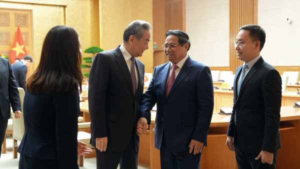 3月16日,越南总理范明政在河内会见出席中越外交、国防、公安“3+3”战略对话机制首次部长级会议的外交部长王毅、公安部长王小洪、国防部长董军。