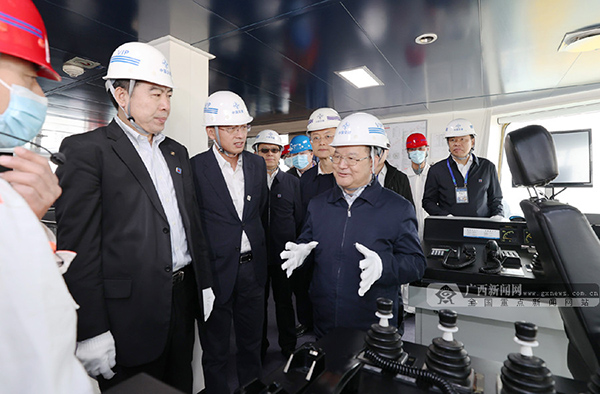 榄根作业区、沙尾作业区是龙港新区东港产业园和龙潭产业园重要的出海港口,目前项目建设工作正加快推进。在铁山东港区,鹿心社详细了解榄根作业区、沙尾作业区码头泊位建设以及铁山港30万吨航道建设等情况。他指出,要抢抓西部陆海新通道和北部湾国际门户港建设的重大机遇,坚持问题导向,系统梳理影响项目建设的突出问题和制约因素,采取针对性举措逐个突破,加快推动铁山港东岸码头泊位尽快建成开港,助推玉林“借道出海”,实现更高水平对外开放。