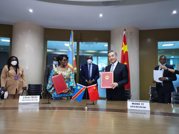 当地时间2021年1月6日,国务委员兼外长王毅在金沙萨同刚果(金)国务部长兼外长通巴举行会谈。会谈后,双方签署了两国政府关于共同推进“一带一路”建设的谅解备忘录。