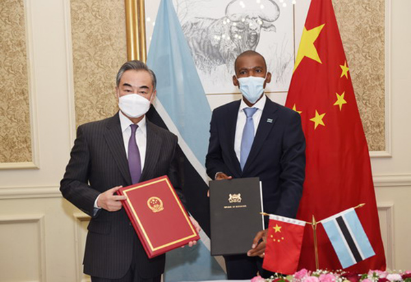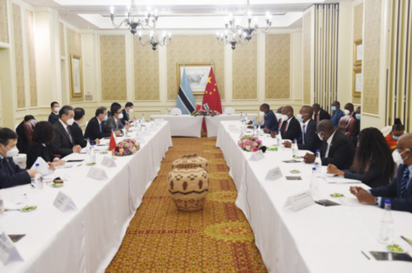 王毅说,双方要珍惜得来不易的两国关系良好局面,巩固政治基础,不断深化互信。中方愿同博方继续加强抗疫合作,统筹疫情防控和经济发展,有序推进双边合作项目复工复产,助力博方最终战胜疫情。博将成为非洲第46个共建“一带一路”的伙伴国,适逢中博建交46周年。这是一个美好的象征,将鼓励和支持两国企业界深化互利合作,为中博互利合作开辟新的前景,造福两国人民。中方愿同博方充分发挥双边合作机制作用,推进农业、基础设施、数字经济等领域合作,推动两国互利合作取得新成果。