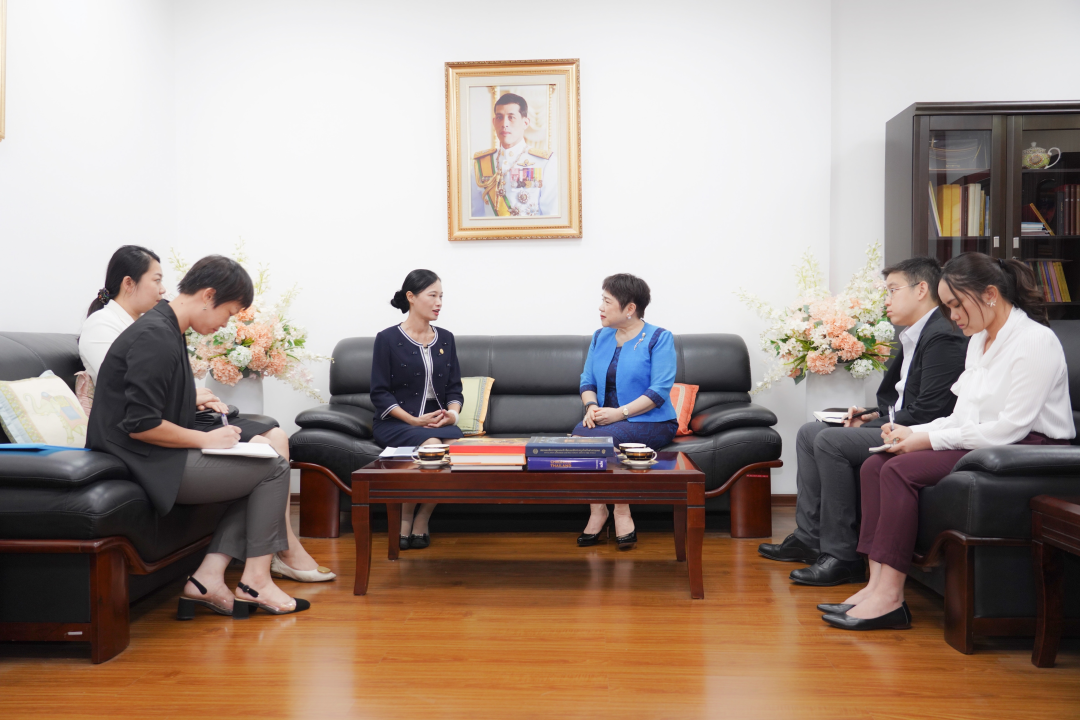 6月27日,东博会秘书处秘书长韦朝晖率工作组拜会泰国驻南宁总领事彬嘉玛•塔维她雅浓,就共同办好第19届东博会充分交换意见并达成共识。泰方表示目前泰国参与东博会各项筹备工作进展顺利,将继续与东博会秘书处保持密切合作,确保第19届东博会圆满成功。