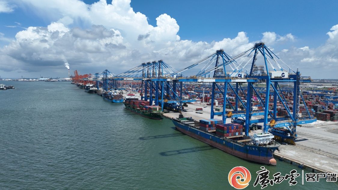 金色9月,北部湾畔,碧波涌动,巨轮穿梭,班列驰骋,一派繁忙景象。