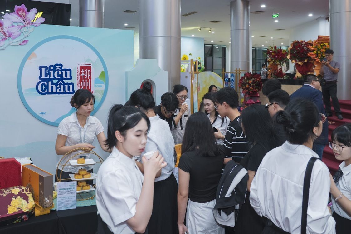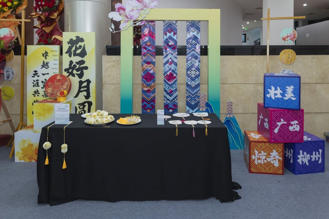 紫荆花口红、铜鼓茶叶罐、螺蛳粉冰箱贴、侗族鼓楼拼图等极具地域特色的非遗文创产品,引发中外嘉宾浓厚兴趣;螺蛳粉、三江绿茶、桂花红茶、柳州饭店月饼等地道美食,让来宾大饱口福、频频点赞。在中秋体验区,中越嘉宾亲手制作月饼、灯笼,沉浸式感受传统节日的温情氛围。文艺演出融合山水、民俗、非遗等元素,全面展现柳州的文化底蕴与艺术风采,赢得现场阵阵掌声。
