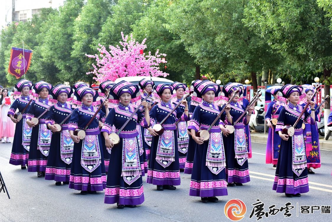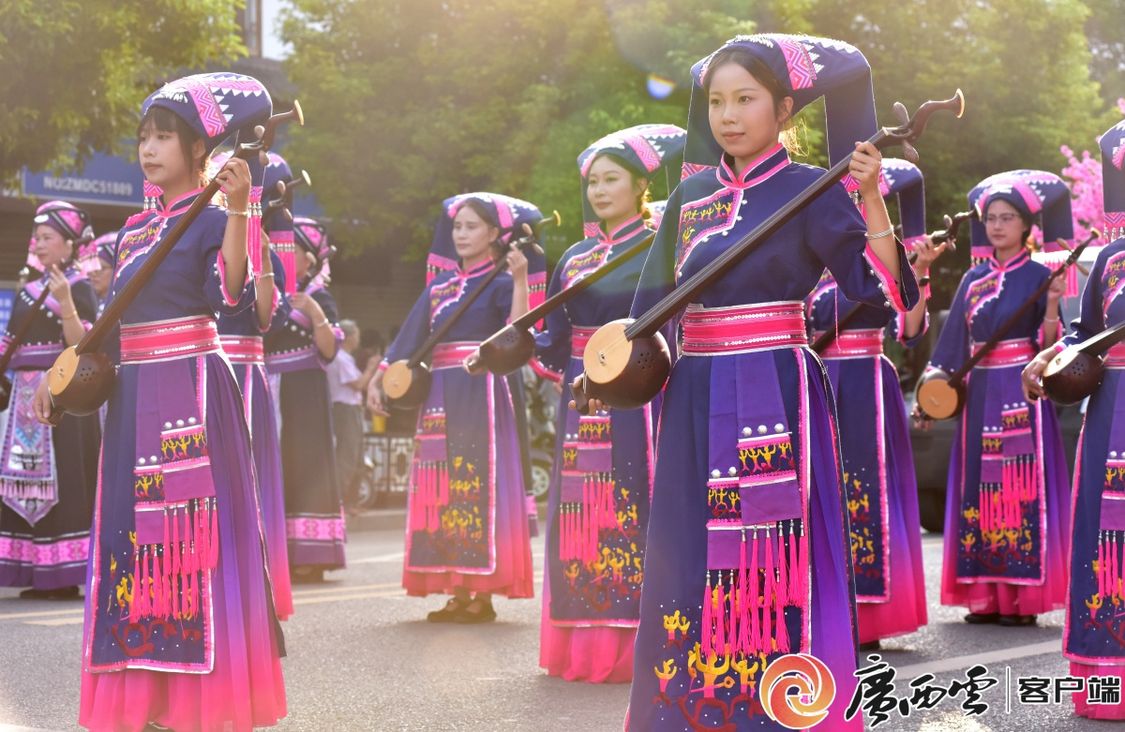 大新县群众在侬峒文化旅游嘉年华大巡游活动中表演展示国家级非遗壮族天琴。廖祖平 摄