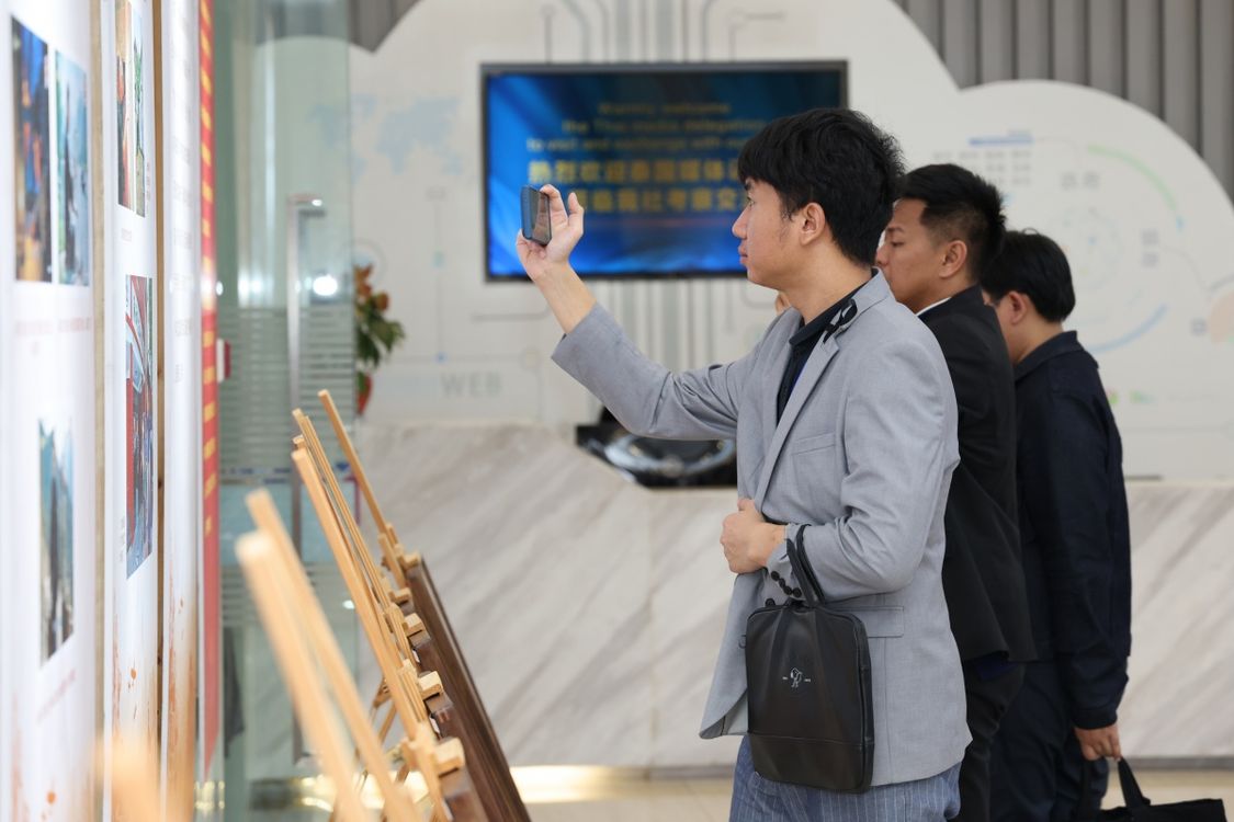 泰国媒体代表在参观广西日报社重要融媒体报道展示。记者 唐典胜 摄