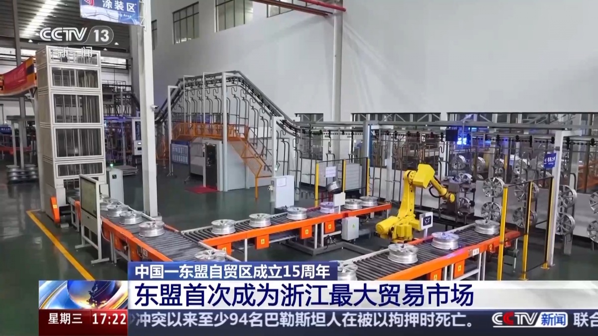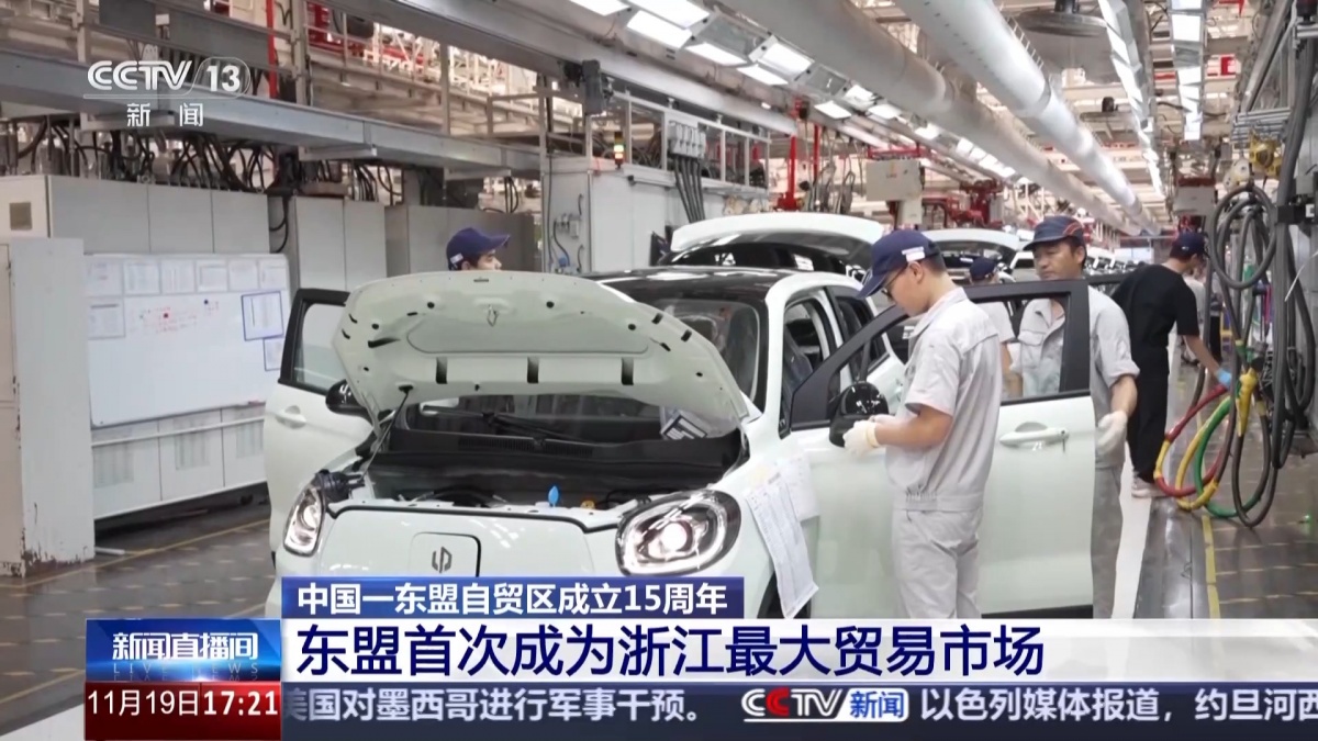 据杭州海关统计,今年前10个月,浙江省对东盟货物贸易进出口7106.1亿元,同比增长16.2%,东盟首次超越欧盟,跃升为浙江第一大贸易市场。