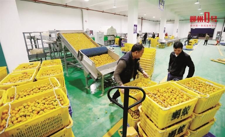 工作人员使用周转筐分装金桔。(图片由柳州市农业农村局水果技术站提供)