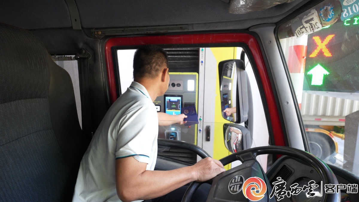 司机在边检快捷通关设备前刷证件。刘宇昕 摄