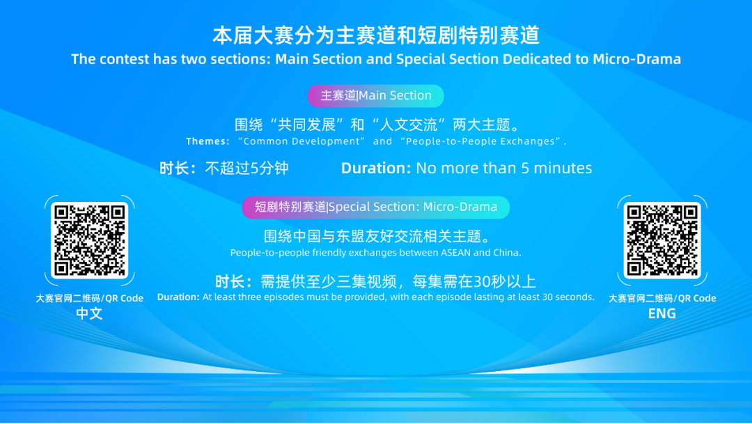 本届大赛主题为“携手同心 共走现代化之路”,分为“共同发展”“人文交流”两个主赛道和一个短剧特别赛道。旨在通过多形式、多语种的短视频作品,促进中国与东盟各国之间的人文交流,助力中国—东盟合作进一步深化,为中国—东盟建立全面战略伙伴关系5周年主题年营造良好庆祝氛围。