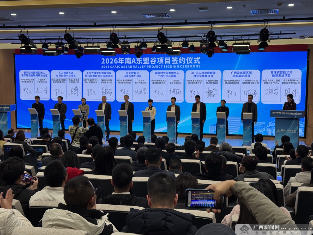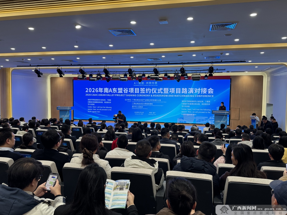 1月22日,由自治区园区办、自治区数据局、南宁市人民政府联合主办的2026年南A东盟谷项目签约仪式暨项目路演对接会在南A中心举行。此次为南A东盟谷今年首场签约活动,共计超20个项目在现场集中签约,其中东盟企业合作项目6个,A超项目5个,涉及越南、泰国、马来西亚、菲律宾等多个东盟国家,覆盖医疗、物流、文旅等多个领域。