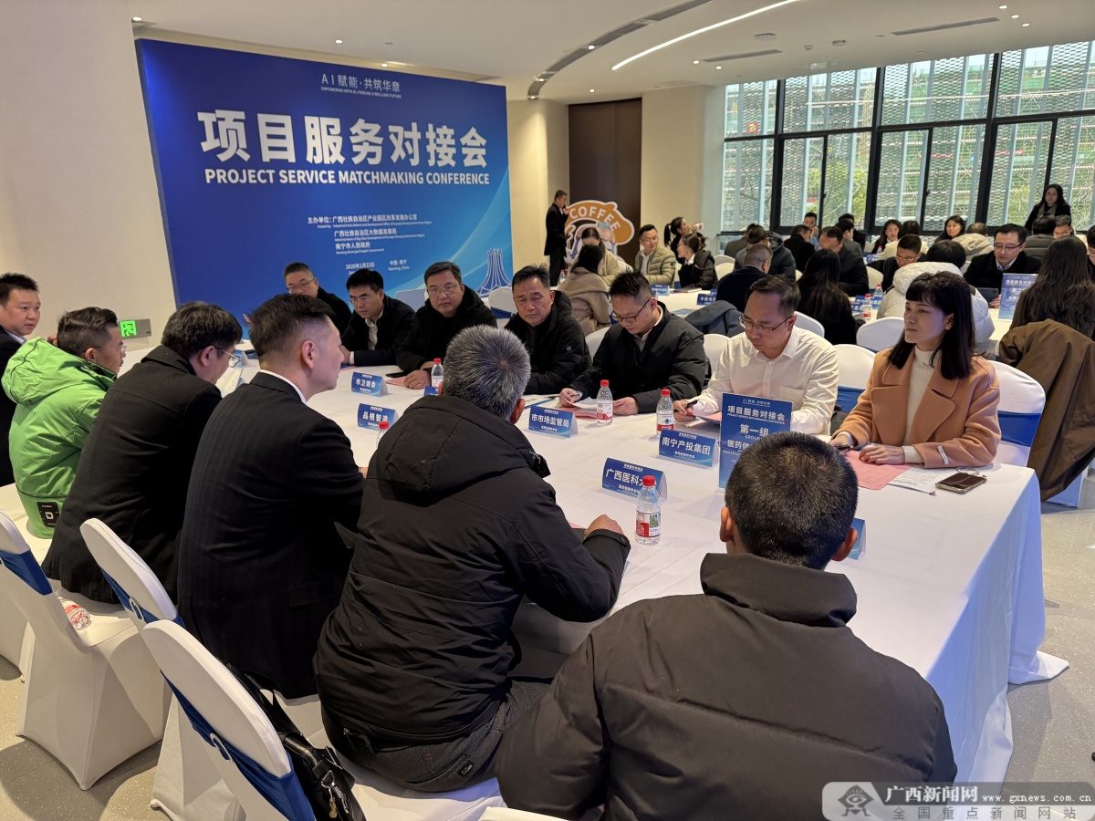 本次对接会特别设置路演环节。捷佳润科技集团股份有限公司、广西品格智造生命科学研发有限公司等5家企业代表依次上台路演,推介分享AI先进技术和产品。活动现场还举行了项目服务对接会,医药健康养老、金融创新、智慧农业、跨境电竞电商、工业交通、科教文旅六大核心领域现场分组洽谈,相关企业与行业主管部门就应用场景、业务合作、融资需求等进行面对面沟通,助力企业精准匹配应用场景,高效对接合作资源,实现供需两端的深度耦合。