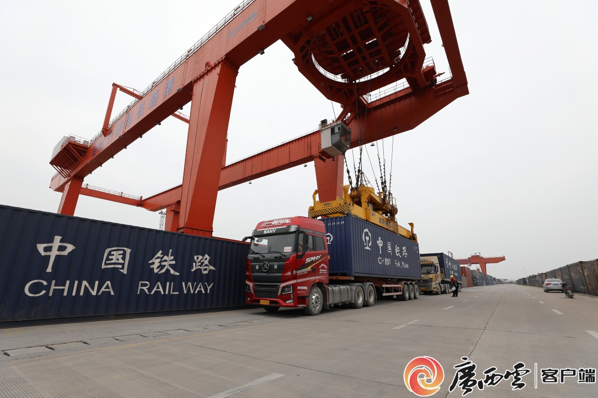 南宁国际铁路港内正在进行中越班列装车作业。陈智彬 摄