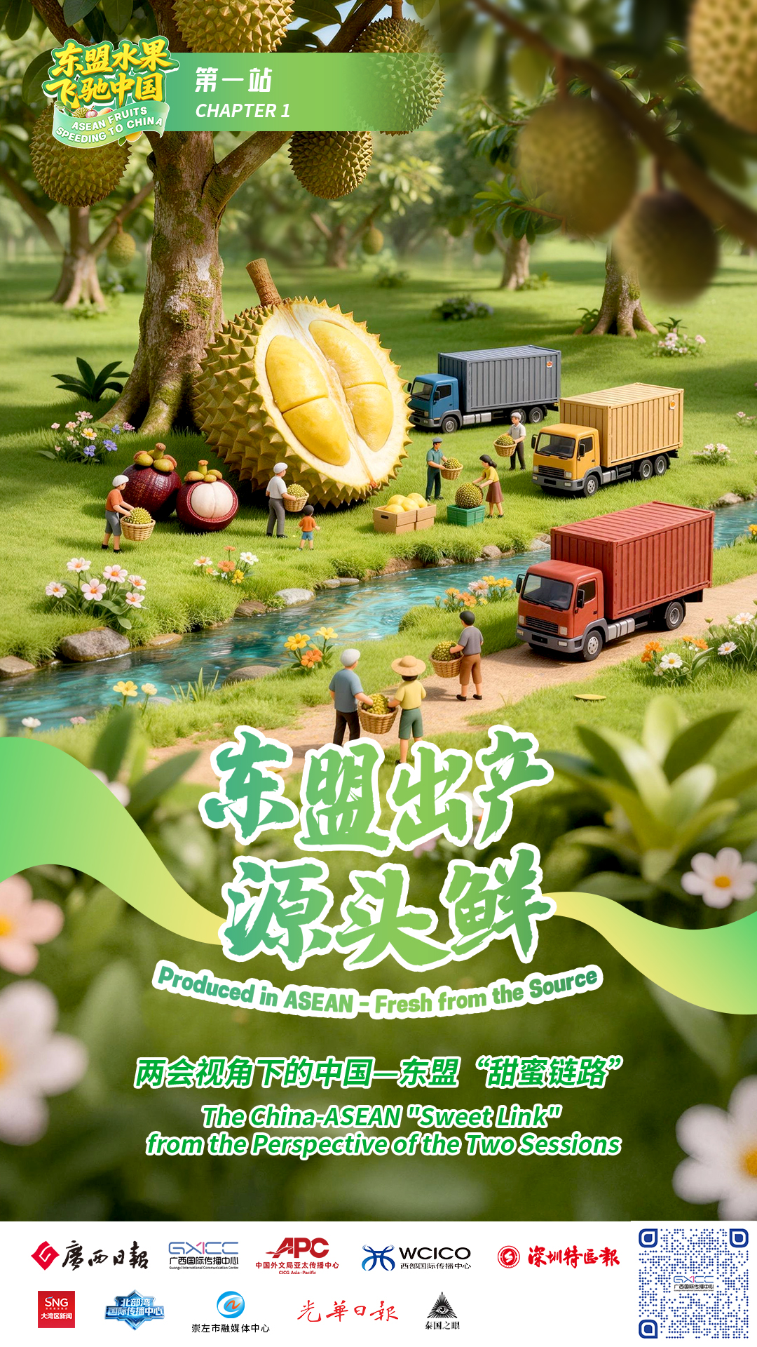 本次报道围绕“东盟出产+广西集散+中国畅销”贸易新链路,聚焦中国—东盟跨境水果贸易,串联水果从东盟果园采摘、跨境运输、广西集散,到全国终端消费的全流程。