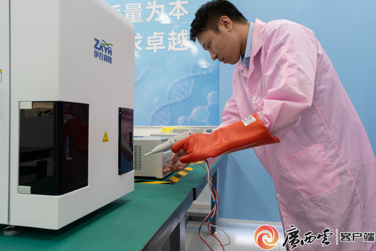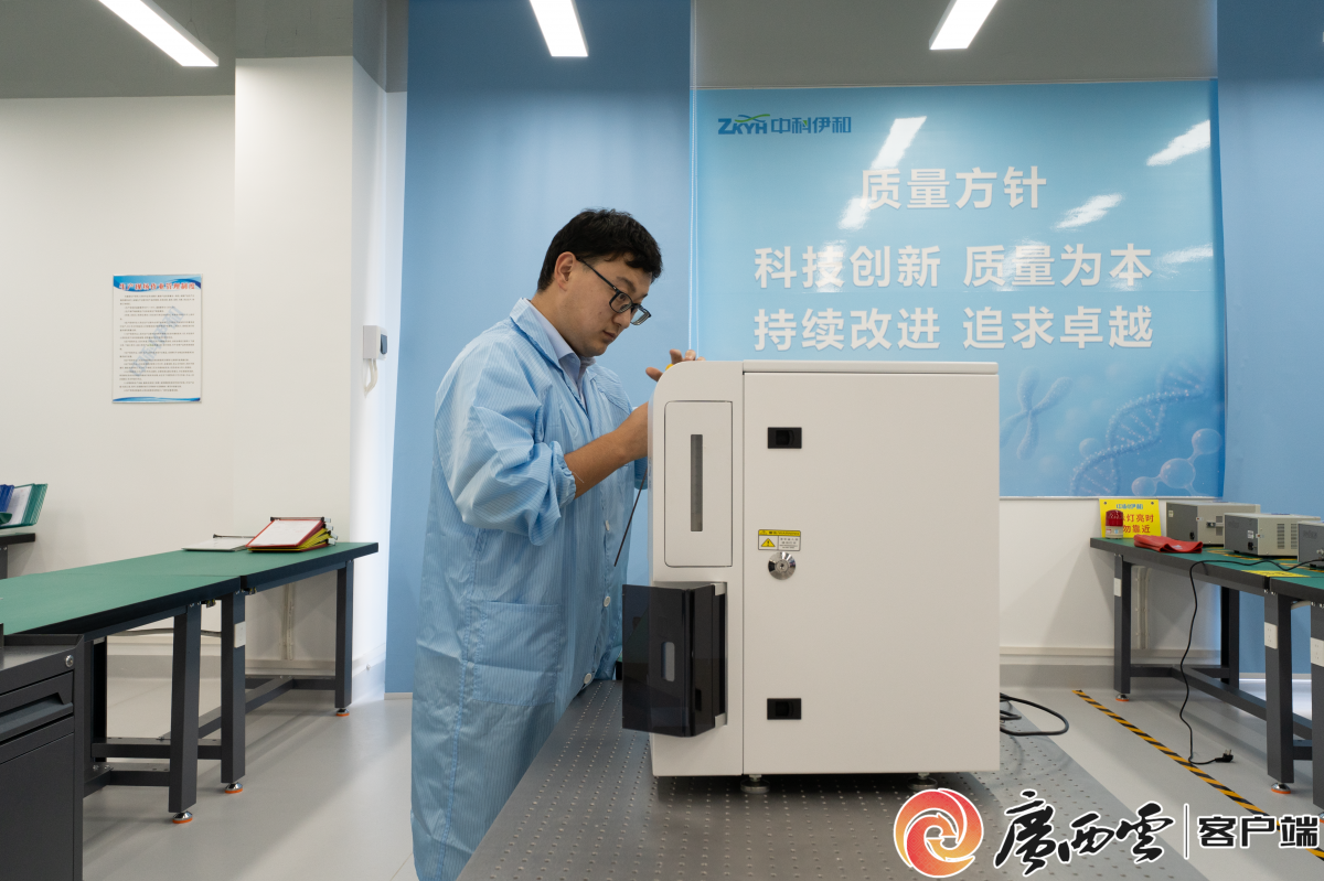 中科伊和智能医疗科技(广西)有限公司技术人员正在检验医疗设备。记者 朱新华 摄