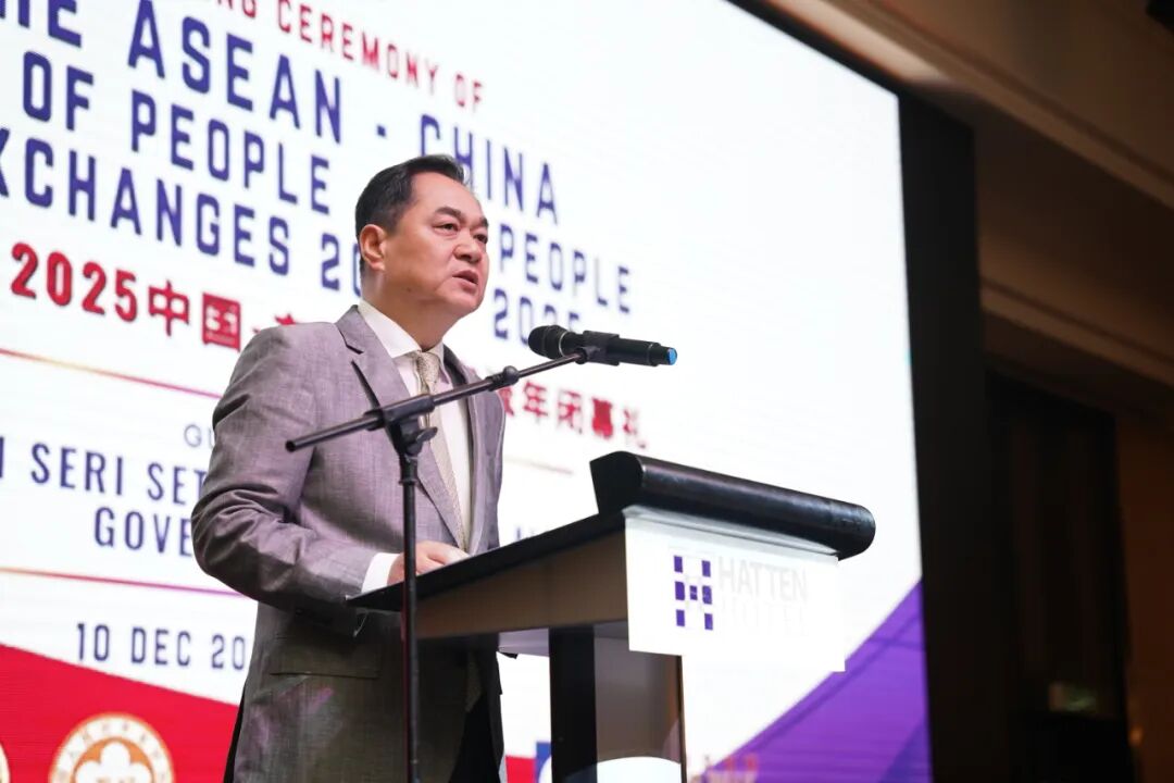 12月9日至10日,由中国人民对外友好协会和马来西亚—中国友好协会共同主办的2024—2025中国—东盟人文交流年闭幕式系列活动在马来西亚马六甲州成功举办。马来西亚总理安瓦尔向活动致信表示祝贺,马六甲州元首莫哈末宣布闭幕,泰国前副总理功·塔帕朗西出席。中国人民对外友好协会会长杨万明、马六甲州首席部长代表林万锋、马中友协会长马吉德、中国—东盟中心秘书长史忠俊在闭幕式上致辞,东盟秘书长高金洪视频致辞。来自中国驻马使馆,国家广电总局等中国有关部委和辽宁、黑龙江、江苏、福建、河南、湖南、广西、四川、贵州、陕西、新疆等11个省(自治区),以及中国—东盟中心、东盟秘书处、东盟各国友好组织等近300名代表出席。
